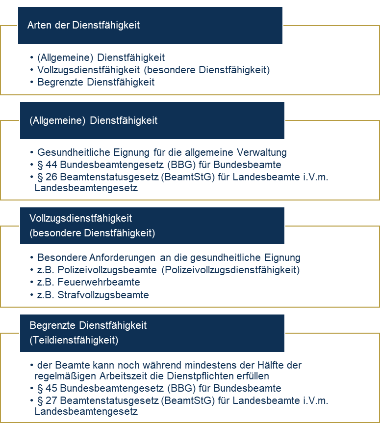 Ausgangspunkt des Beitrags ist die folgende Übersicht zu den verschiedenen Arten der Dienstfähigkeit.